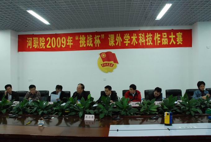 3月31日,由我校团委和实训中心共同主办的2009“挑战杯”大学生课外学术科技作品大赛在图书馆B302举行。刘守义教授、校内评审专家、校团委成员、各院系团总支书记等出席了此次活动。