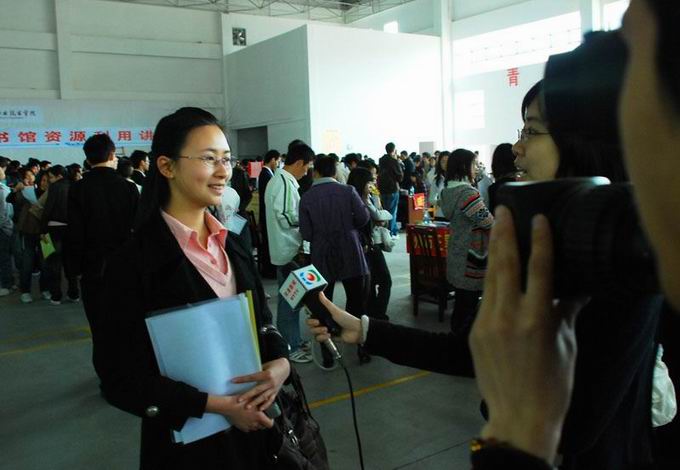 “实力+自己的爱好、专长,使自己找到适合自己的岗位”。来自06现代教育(1)班的何文瑜自信满满的说。何文瑜是今年我校的应届毕业生,对于我校举行这样大型的招聘会,她表示:“来我校招聘的公司都是一些知名度较好的公司,这为我们应届毕业生提供了更便捷的应聘方式。”