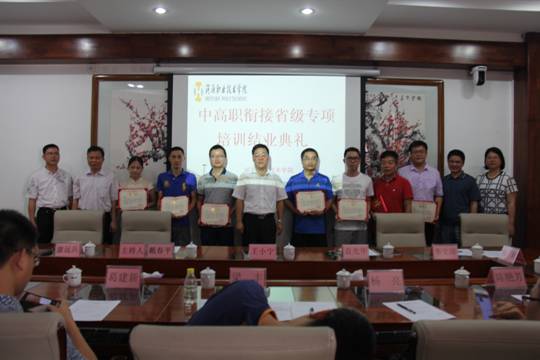 6月30日,我校举行中高职衔接省级专项培训班举行结业典礼,副校长王小宁,教务处、继续教育学院、有关二级学院校企办主任及专业主任、参加培训的中职学校专业主任(骨干教师)参加典礼。