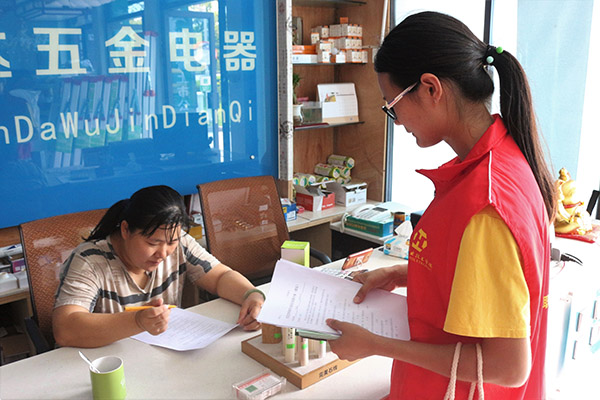 居民填写创文知识调查问卷
