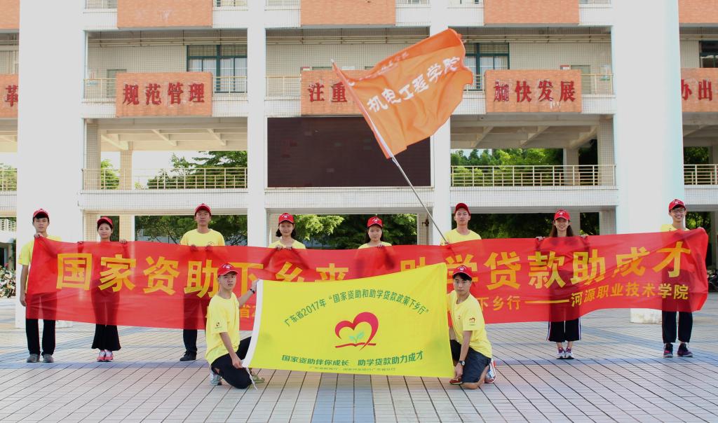 根据《广东省教育厅关于开展广东省2017年“国家资助和助学贷款政策下乡行活动的通知》的文件精神,7月10日到7月17日,我校组织学生志愿者服务队——“筑梦人”及“青春出彩队”在指导老师的带领下,分别到河源市紫金县紫城镇黄花村及龙川县丰稔镇成塘村开展“国家资助和助学贷款政策下乡行”活动。