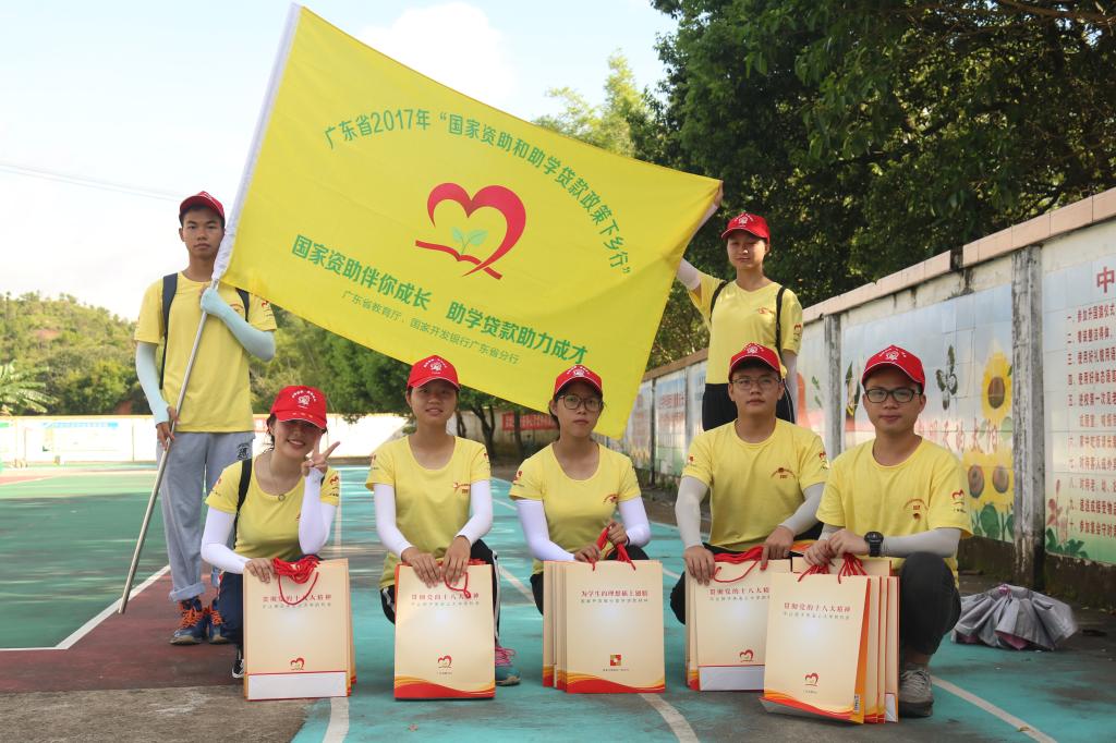 78日以来,我校“筑梦人”每天高举旗帜整齐列队,手提宣讲手册等物资,挨家挨户走访村民宣讲包括国家奖助学金、国家助学贷款、学费补偿贷款代偿、校内奖助学金、勤工助学、困难补助、伙食补贴、学费减免、“绿色通道”等多种方式的混合资助体系国家助贷政策。