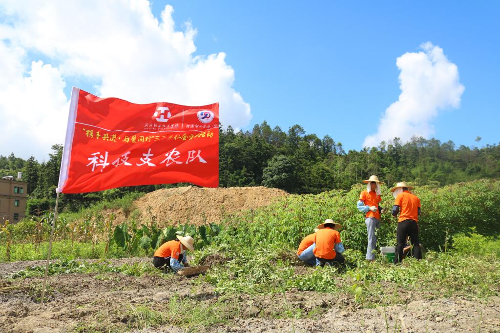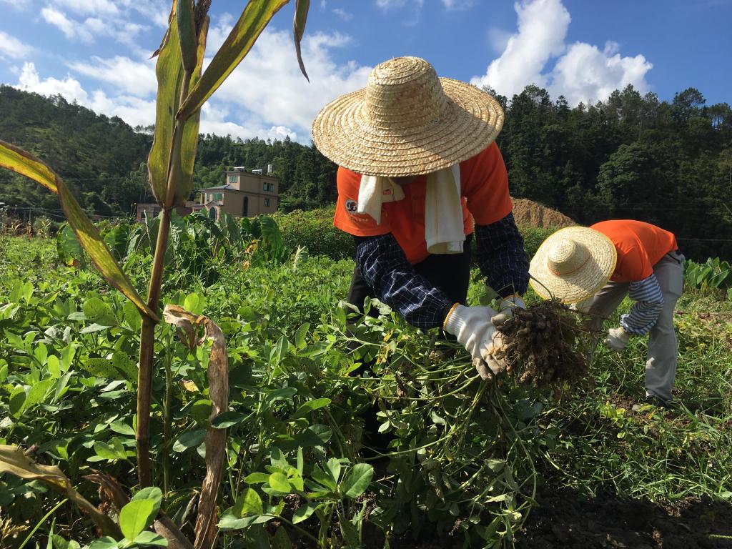 烈日当头的七月,黄花大地正值丰收时期。黄花村的土地资源丰富,农作物种类多,但有许多人家缺少劳动力,而志愿者的到来大大减轻了农民们的负担。在“三下乡”期间,科技支农队不辞辛苦,援助农户收割稻谷、花生等农作物。连日来,科技支农队一队戴着草帽,穿着兵鞋,在田地里辛勤耕作,挥洒汗水,在肥沃的土地上留下志愿者的印记。
