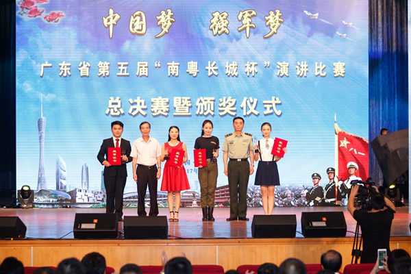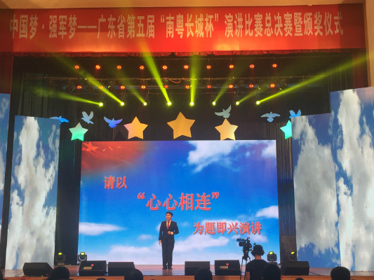 为纪念中国人民解放军建军90周年,我省举行“中国梦,强军梦”为主题的第五届“南粤长城杯”演讲比赛总决赛。此次比赛由省委宣传部、省教育厅、团省委、省国防教育办公室联合举办。大学组共设特等奖2名,一等奖4名,二等奖6名,三等奖8名,优秀奖10名。比赛采用现场抽题即兴演讲的方式进行。此项比赛已连续举办五届,在全国演讲学界有较大的影响。