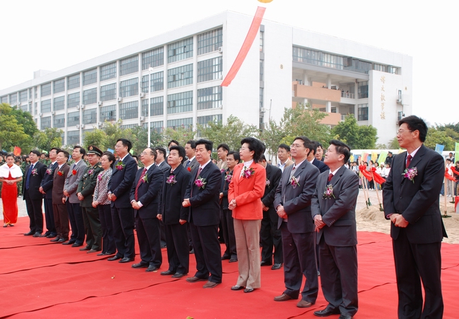 刘校长在奠基仪式上致辞指出,我校为了适应省职业教育发展的新形势,2007年以优异成绩通过教育局高职高专人才培养工作水平评估,2008年我校乘势而上,提出“加快发展、速提内涵”新思路和创建广东省示范性高等职业院校的新目标。经过努力,我校内涵建设取得可喜成绩,教育教学质量迈上了新台阶。他表示,学院实训楼及行政办公楼的动土兴建,必将为广大师生营造一个良好的工作、学习和生活环境,必将有力推动我院创建目标是顺利实现。