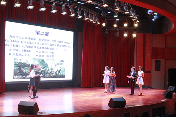 期间,比赛现场还设置了知识竞答环节,题目内容以南昌起义的相关知识为主,并由陈晓峰书记为现场选手及观众进行详细的解答。最后,晋级赛在评委老师与选手的合照留影中圆满落幕。