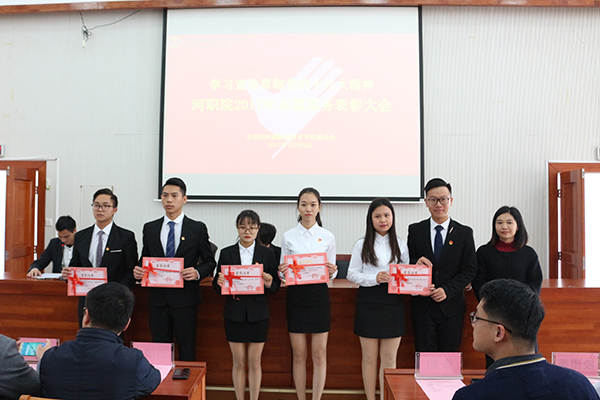为深入学习贯彻党的十九大精神,纪念第31个“国际志愿者日”。12月5日,我校于行政楼C108开展2017志愿服务表彰大会,我校工会副主席汤剑冰,团委书记陈晓峰,学生工作处助学管理科科长吴紫苑,各二级学院团总支书记,青年志愿者协会,各学院青队、志愿服务队以及志愿服务项目代表均出席此次大会。大会由校团委老师古伟民担任主持。