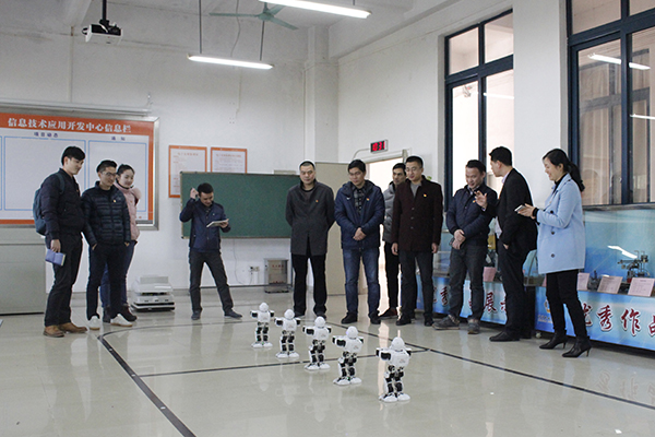 来宾与我校团干参观我校自主研发的机器人