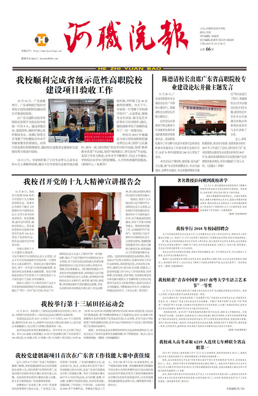 12月29日,《河职院报》第66期电子版上线。请大家点击附件下载PDF版,在电脑中放大清晰阅读。
