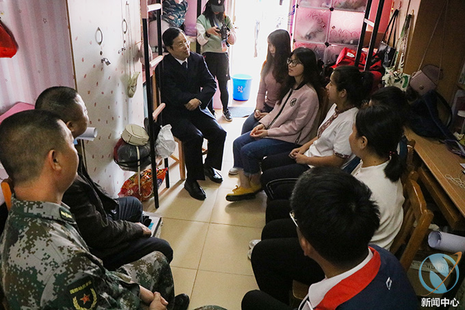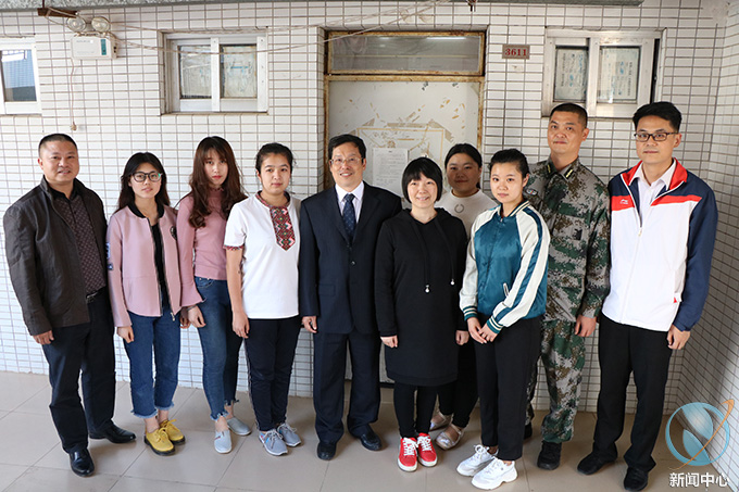 此次走访宿舍让同学们深切感受到来自学校领导殷切期望和鼓励关爱。最后,校党委书记韦荣和同学们在宿舍外面合影留念。