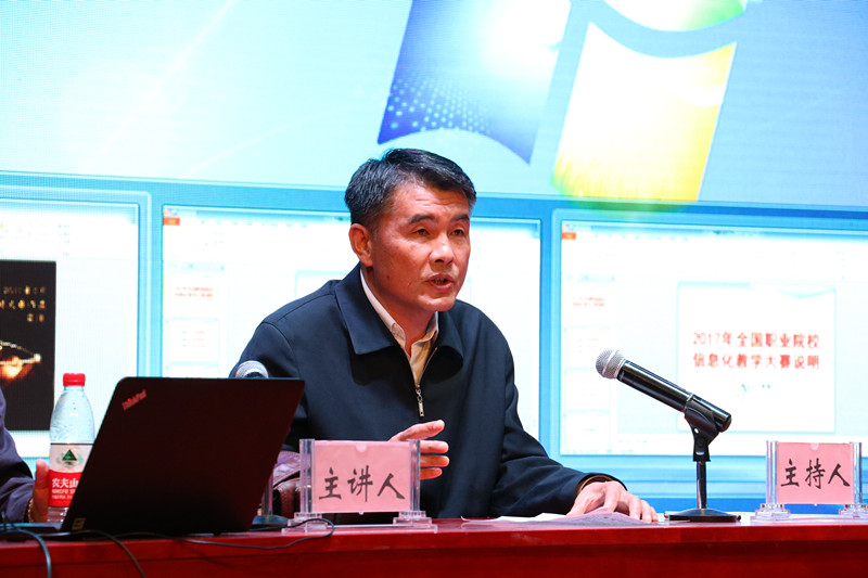 针对教师信息化教学大赛问题,他向我校人员详细讲解了全国职业院校信息化教学大赛的举办历程、赛制要求、参赛方式、备赛要点等,为了让我校人员进一步理解参赛课程的设计和制作方法,他还选取了历届获奖的优秀作品进行深入剖析。