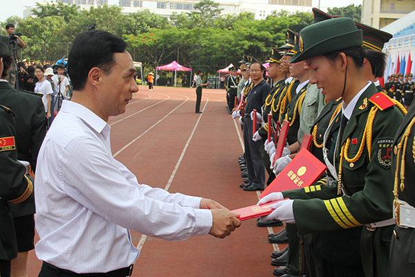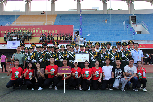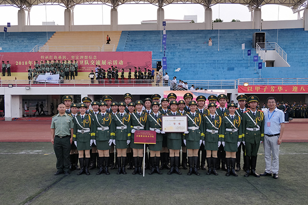 为深入贯彻落实党的十九大关于加强全民国防教育的决策部署,开展“传承红色基因,坚定理想信念”主题教育活动。5月12日至13日,2018年广东省学校国旗护卫队交流展示活动于广东医科大学东莞校区体育馆隆重举行。我校国旗护卫队赴广东医科大学参加此次交流展示活动,并在活动中荣获“团体项目二等奖”荣誉。