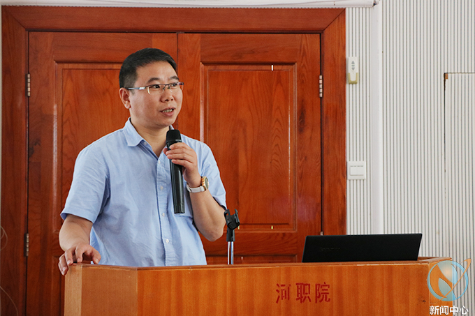 汇报结束后,深圳职业技术学院教育技术与信息中心主任仵博上台作了主题为《顶层设计引领智慧校园建设》的讲座。他认为,智慧校园建设应以规划和信息共享为前提,以学校的战略目标为根本,以顶层设计为实践,进行量身定做。