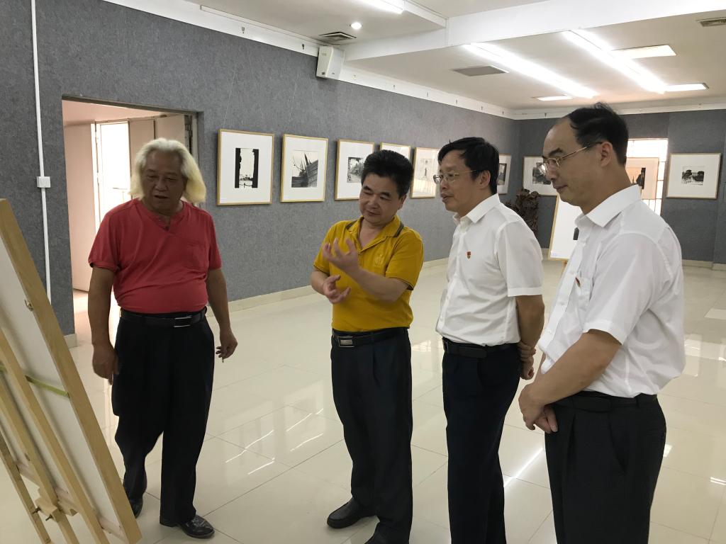 骆文冠访欧归来水墨画展自5月26日开幕以来,吸引了校内外大量美术专业人士和爱好者前来参观。5月31日下午,学校组织参加网络安全专题报告会的校领导、副科以上干部、专业主任、班主任、辅导员、各党(总)支委委员在会后参观画展,学校党委书记韦荣、副校长唐汉芳、赖小景在画展现场认真聆听了骆老先生的讲解。