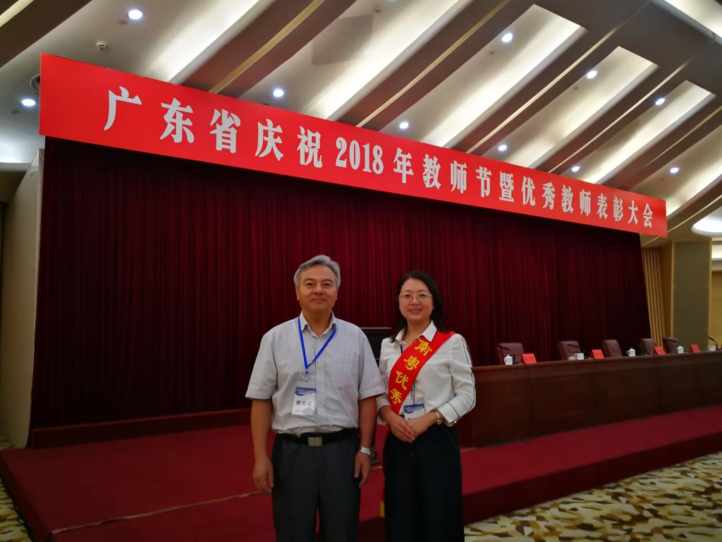 9月3日上午,广东省庆祝2018年教师节暨表彰优秀教师大会在广州珠岛会堂隆重召开。省委书记李希,省委副书记、省长马兴瑞,省政协主席王荣等出席会议并为受表彰的教师代表颁奖。我校教师罗春娜、伍新蕾分别获评“南粤优秀教育工作者”“南粤优秀教师”。