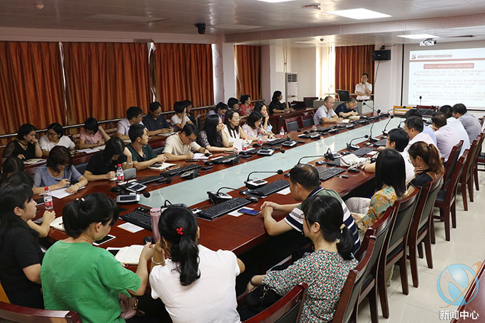 9月11日,我校在行政楼B601会议室召开以“建设具有强大凝聚力和引领力的社会主义意识形态”为主题的党建专题讲座。本次讲座由我校党委书记韦荣主讲,人文学院党总支纪检委员谢战锋主持。人文学院全体党员教师出席本次党课活动。