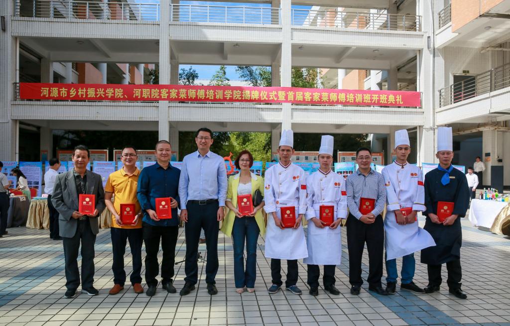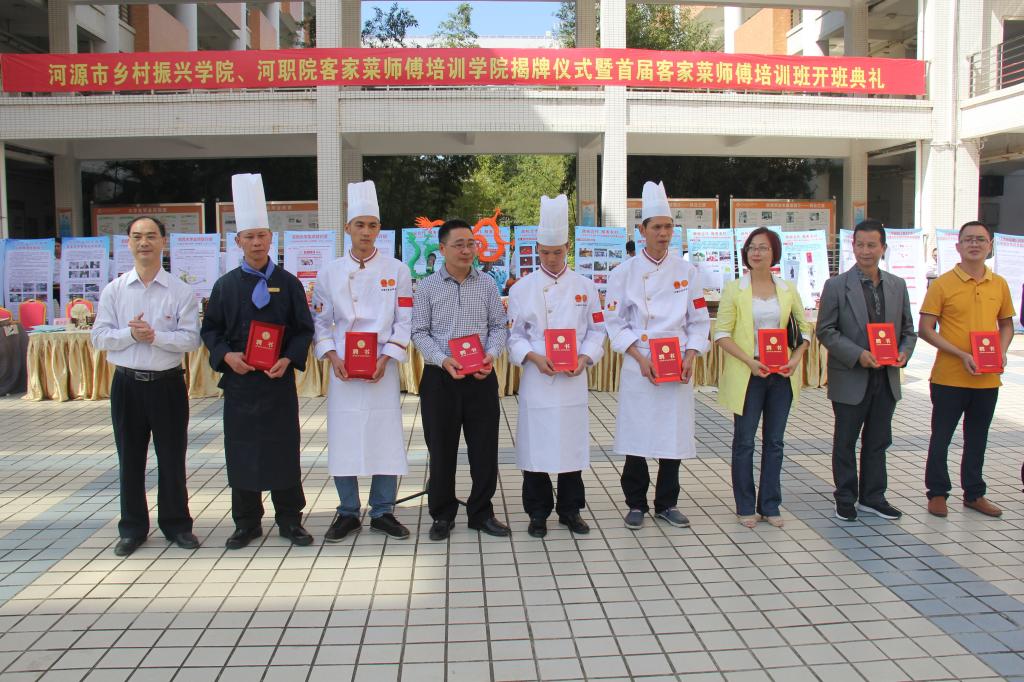 为贯彻落实十九大精神,按照《中共中央、国务院关于实施乡村振兴战略的意见》(中发[2018]1号)和中共广东省委、广东省人民政府《关于推进乡村振兴战略的实施意见》(粤发[2018]18号)文件精神要求,积极落实省委书记李希同志提出的实施“粤菜师傅”工程部署,响应市委书记丁红都同志提出成立客家菜师傅培训学院的构想,学校成立客家菜师傅培训学院,着力在客家菜的品牌化、标准化、专业化上下功夫,为客家菜厨师和客家菜师傅培训搭建了全新的平台。同时,按照中央的要求和省市的工作部署,我校联合市实施乡村振兴战略工作指挥部、市委农办、市人力资源和社会保障局、市农业局、市旅游局、市扶贫办、灯塔盆地国家现代农业示范区管委会等部门采取“政校农”协同创新的模式设立河源市乡村振兴学院,为乡村振兴提供人才支撑,未来5年将对全市50岁以下的农民进行全员轮训,培养大批量的农业职业经理人、家庭农场主、农业合作社管理人、创业致富带头人、乡村工匠、农技推广员、农村养老护理员、乡村医生等乡村振兴人才。这是全省高校首家“政校农”协同创办的乡村振兴学院,并由市政府副市长边立明同志担任乡村振兴学院管委会主任,协调全市资源推进学院乡村振兴人才培养工作,为我校服务河源乡村振兴搭建了全市的平台,学校积极将两个学院打造在全省、全国同类地区具有影响力的乡村振兴人才培养基地和客家菜培训基地,助推我市乡村振兴发展,为河源乡村振兴提供人才支撑。