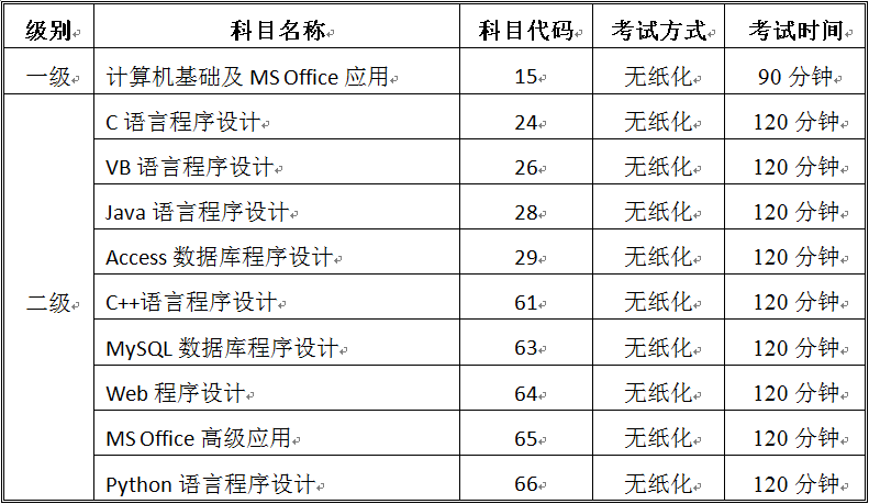 2019年上半年全国计算机等级考试开考科目(赢博线上官网(集团)官方网站考点)