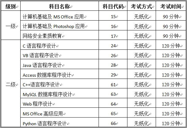 2019年9月全国计算机等级考试开考科目(赢博线上官网(集团)官方网站考点)