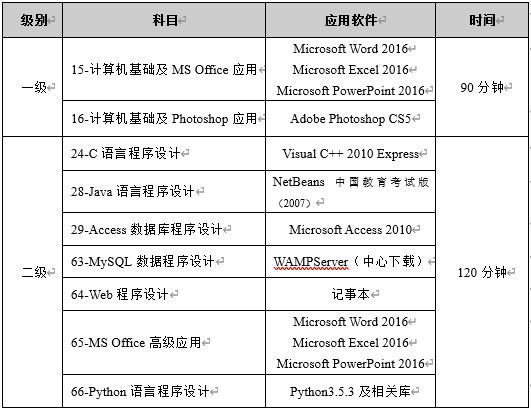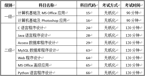 2021年9月全国计算机等级考试开考科目(赢博线上官网(集团)官方网站考点)