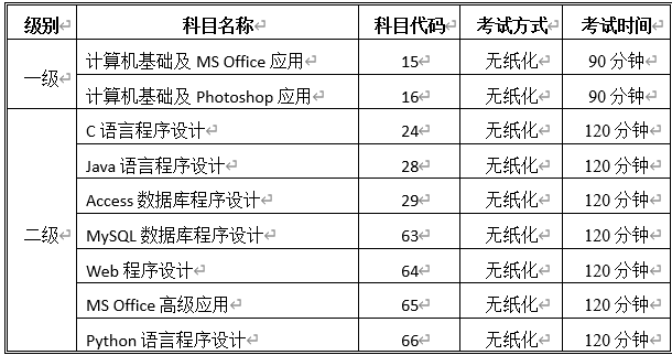 2022年3月全国计算机等级考试开考科目(赢博线上官网(集团)官方网站考点)