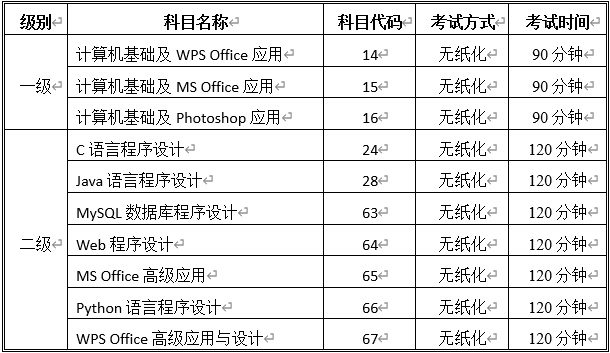 2023年3月全国计算机等级考试开考科目(赢博线上官网(集团)官方网站考点)