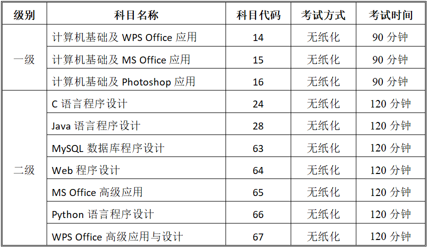 2025年9月全国计算机等级考试开考科目(赢博线上官网(集团)官方网站考点)