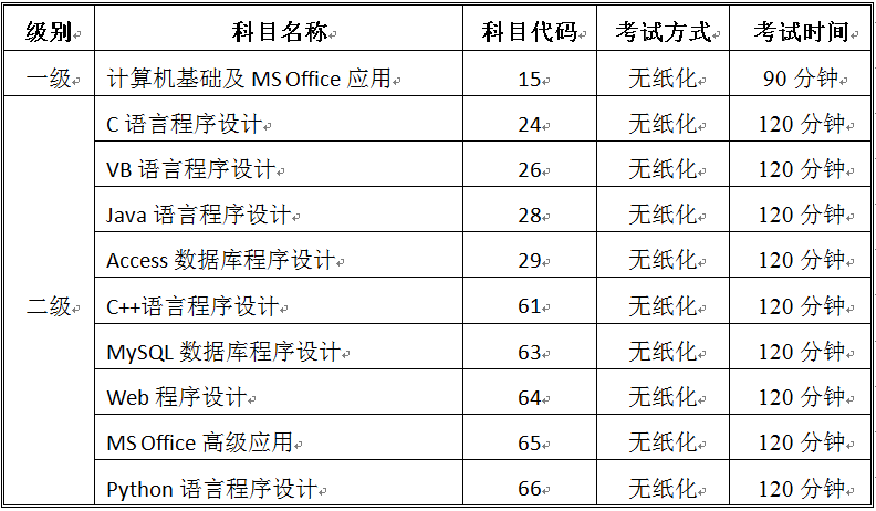 2018年下半年全国计算机等级考试开考科目(赢博线上官网(集团)官方网站考点)