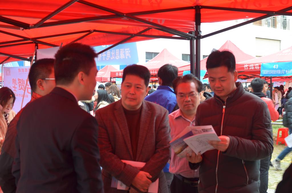 在招聘会现场,陈农心副校长与参会企业就企业的基本情况、企业的人才需求、现场招聘情况、已聘毕业生发展等方面进行密切交流,希望企业深入校园,加强校企合作,共谋校企共同发展。同时,陈农心副校长还与现场应聘的毕业生进行了深入交谈,了解毕业生的求职意愿,征求毕业生对学校就业创业服务工作的意见。