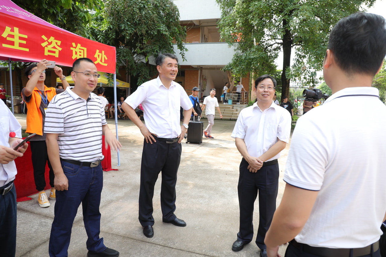 学校党委书记韦荣和校长陈德清亲临机电学院迎新现场指导工作时,与校友们亲切交谈,对他们的善举给予高度的肯定,希望他们能把这种优良做法一直传承下去,并做好宣传工作。