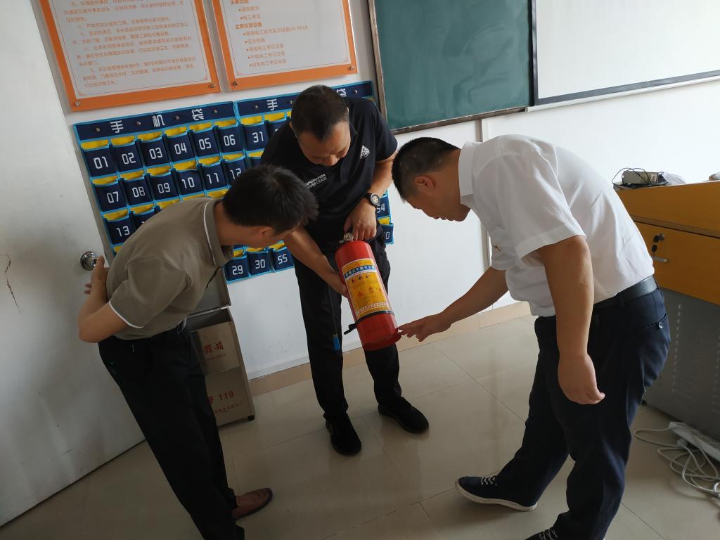 周永福副院长带领全体实训室管理员一同检查各个实训室的安全情况。重点巡查了实训室的用电安全、玻璃墙松动、墙体开裂脱落、天花漏水、化学物品处置、消防应急设备等情况。
