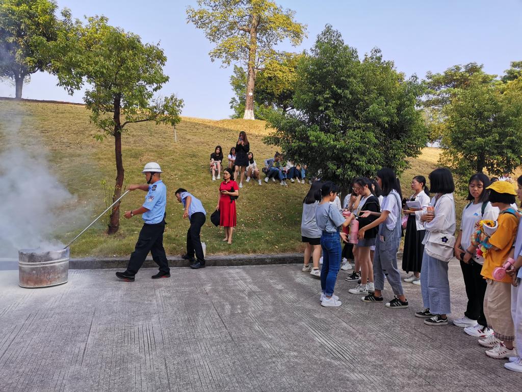 为了加强实训室安全工作,提高师生消防安全技能,10月10日下午3点,我院服装与服饰设计专业邀请学校保安队对服装与服饰设计专业实训室管理员、专业教师以及2019级新生开展了一次安全消防演讲与演练活动。活动在图书馆D座旁进行,内容主要包含火灾发生的原因、怎样预防火灾、火灾逃生的基本知识和灭火器的使用。