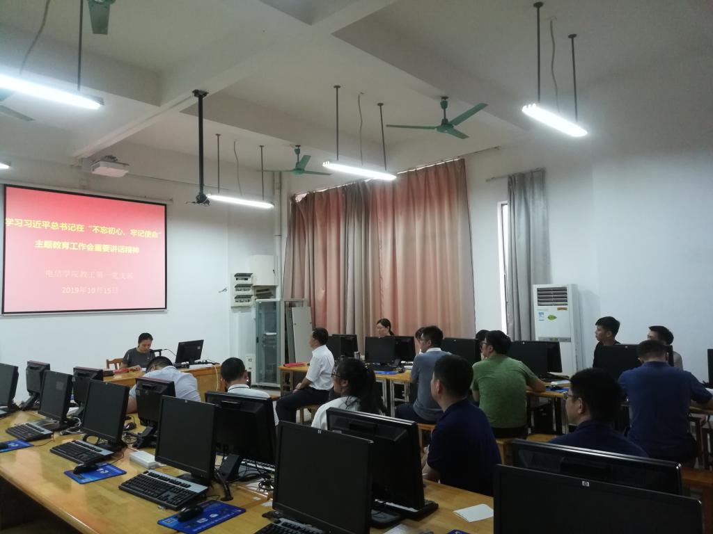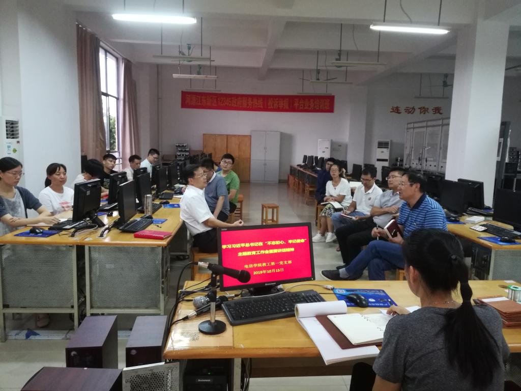 为了进一步推动学校“不忘初心、牢记使命”主题教育深入开展,对照《赢博线上官网(集团)官方网站关于开展“不忘初心、牢记使命”主题教育实施方案》,结合本支部实际情况,电信学院教工第一党支部于10月15日下午召开党员大会,共同学习习近平总书记关于“不忘初心、牢记使命”主题教育工作会议重要讲话精神。学校党委韦荣书记作为支部成员参会,电信学院教工第一党支部全体党员参加会议。