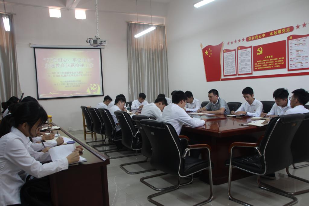会议伊始,杨日奎书记说明此次主题教育会议对学生党员们自我检视工作的重要性。接着,学生党员们进行依次发言自我检视工作报告以及阐述对“不忘初心、牢记使命”主题教育检视工作感言。学生党员们提到要真正理解“不忘初心、牢记使命”主题教育问题就要从工作上自我认识、自我管理,尤其是学生干部们、学生党员们要从小事做起,带领同学们往好的方向发展,提高自我服务精神。学生党员们应在生活上需做到自我反省、自我控制、自觉遵守学校规章制度,同时还要学会与他人沟通、增强自律意识。紧接着,学生党员们还指出作为一名学生党员不仅要了解党的理论知识,做到以德服人、以理服人,还要用自己所学知识应用于日后社会工作、日常中,并在言语上、行动上做到自立、自强、自律来提升自身综合素质与能力。随后,学生党员们还提出学生党员是学生的模范,需时刻做到自我监督、自我检点、自我反思和增强自我责任感,积极参与班级活动、社团活动等各项校园文化活动来丰富自身课余生活,在工作中要有事业心、责任心,做到爱岗敬业、无私奉献。