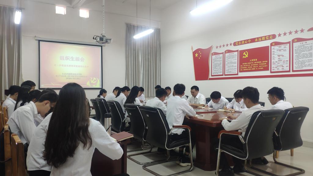 2019年10月24日下午,为进一步推进党建带团建规范化管理,电信学院学生党支部在实训楼B307开展“不忘初心、牢记使命”主题教育组织生活会。参加会议的人员有学生党支部全体党员、负责学生党务工作全体成员,会议由学生党支部书记杨日奎主持。