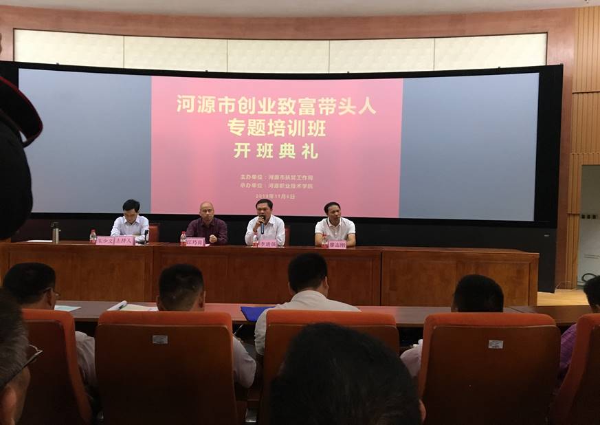 11月4日至8日,由河源市扶贫工作局组织的“河源市创业致富带头人”专题培训班第一期和第二期在河职院开班。此次专题培训班由我校继续教育学院承办,继续教育学院的工作人员全程负责组织带队。来自河源市龙川县、江东新区、东源县共143人参加了第一期培训,来自河源市源城区、和平县、连平县、紫金县共144人参加了第二期培训。在专题培训班第一期和第二期的开班典礼上,我校继续教育学院李文萍院长、江巧良副院长分别致欢迎辞,河源市扶贫工作局党组成员、副局长李进强同志在两期开班典礼上均作了动员讲话。