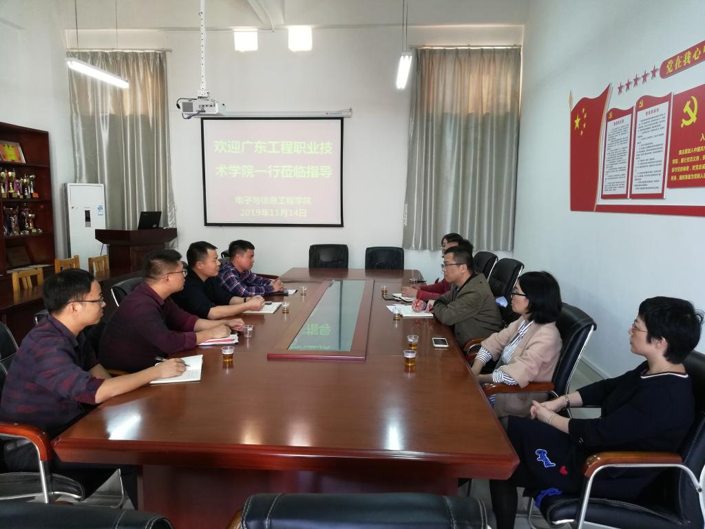 11月14日下午,广东工程职业技术学院人工智能学院林方明副院长一行5人到我院交流考察。电信学院周永福副院长、学校创新创业学院副院长黄文汉以及相关专业教师参加了交流会。