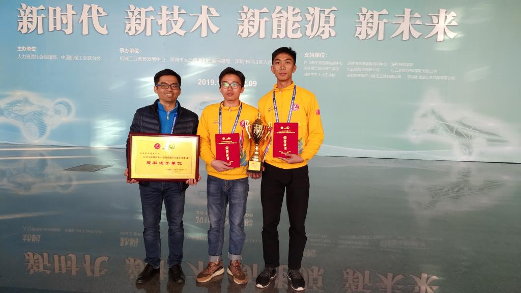 中华人民共和国人力资源社会保障部主办的2019年中国技能大赛——全国新能源汽车关键技术技能大赛决赛于2019年12月3日至8日在深圳坪山燕子湖国际会展中心举行。我校汽车智能技术专业2017级学生陈远球、赖俊达代表广东省参加了“汽车智能化技术”赛项,获得了该赛项学生组第一名的好成绩,同时,赢博线上官网(集团)官方网站被授予“冠军选手单位”荣誉称号。