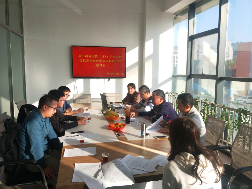 12月13日,教育部科技发展中心课题“基于混合现实(MR)的五轴数控机床全息教学应用系统开发(2018C01009)”课题(下称“该课题”)开题研讨会在机电学院会议室召开,课题于2019年10月正式发文立项,资助金额为40万元。钟建坤院长、上海影创信息科技有限公司经理陈俊、广州双元科技有限公司经理纪楷鸿、杭州中测科技有限公司经理黄德鹏、课题负责人刘俊英及课题组其他成员参加了会议,活动由课题负责人刘俊英老师主持。