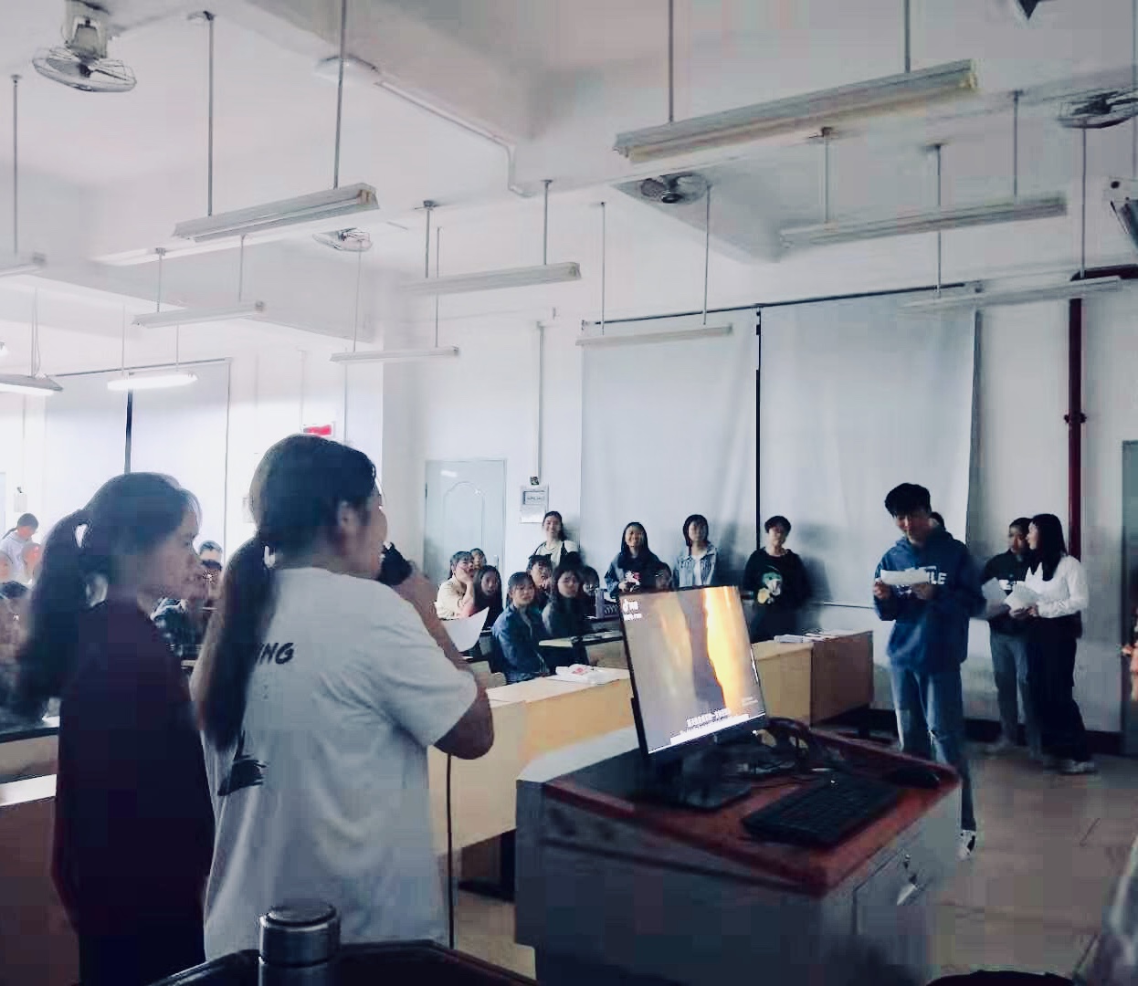 为进一步让当代大学生了解当代青年的使命与担当,使他们能在思想与行为上入党,始终在思想上、行动上与党中央保持高度一致,12月17日,工商管理学院学生党支部以“承新时代担当,不负青春使命”为主题在教学楼C103举办党日活动。学生党支部成员、学生干部及入党积极分子参加了此次活动。活动由钟丽娜、唐胜静主持,在“声情并茂”的环节中拉开序幕,各小组通过观看纪录片《自强不息》并上台进行绘声绘色的配音,以生动形象的汇演剧情传达了自己的使命与担当。