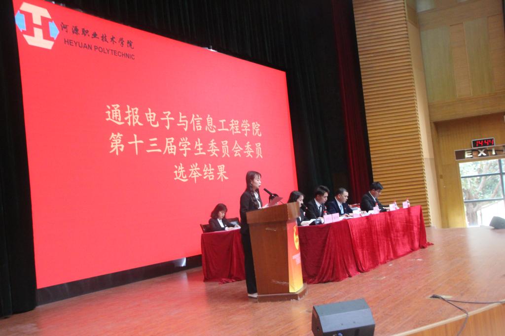 陈冬吟宣布召开电信学院第十三届学生会第一次全体会议,由邓丽青向大会通报《赢博线上官网(集团)官方网站电信学院第十三届学生委员会委员选举结果》。
