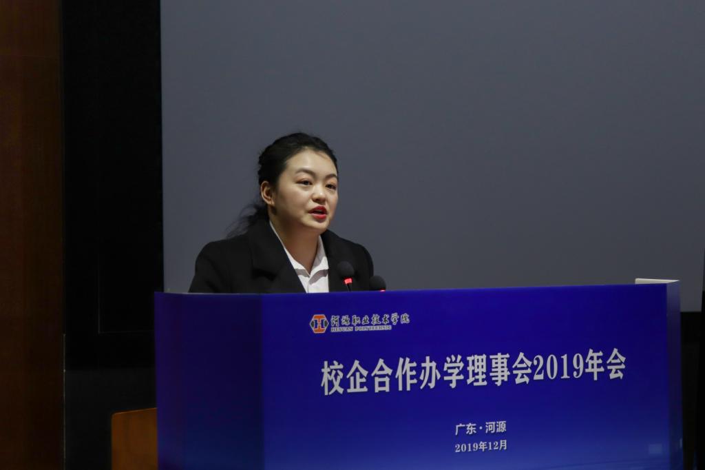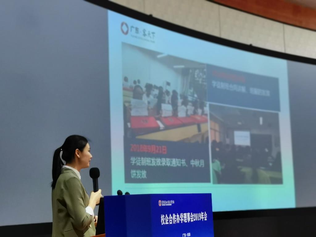 客天下梁晴苑经理在校企合作理事会上作国家现代学徒制试点典型案例分享