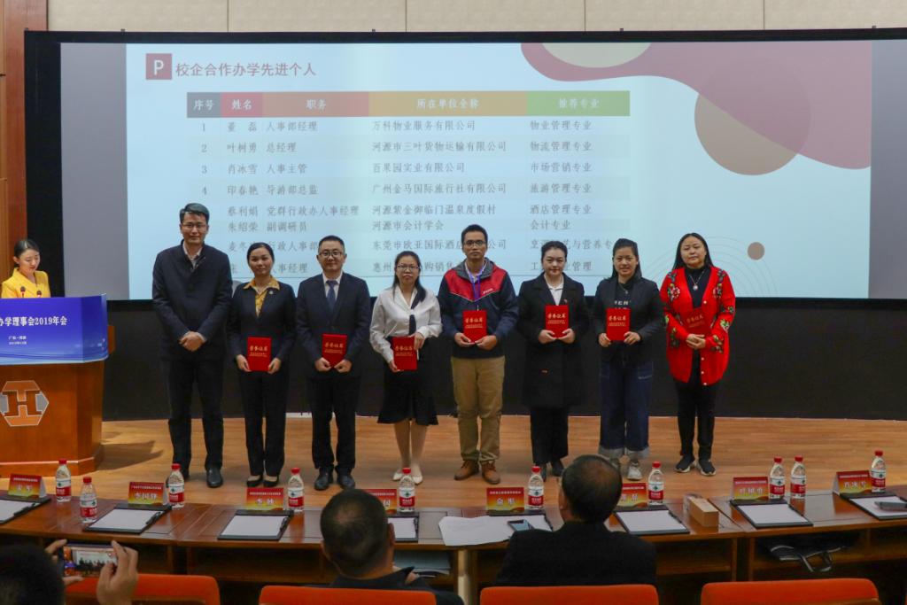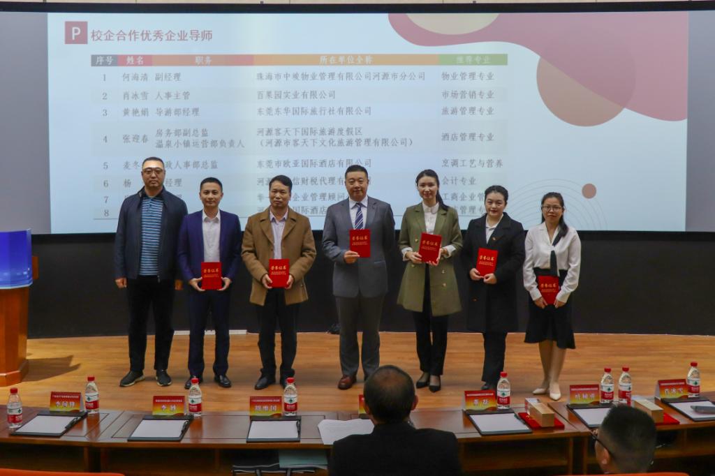 校企办曾惠华主任总结了2019年工商管理学院校企合作的成果。工商管理学院对校企合作办学做出突出贡献的单位、个人、优秀企业导师进行了颁奖。