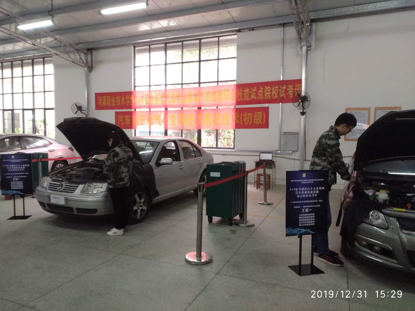 为贯彻《国家职业教育改革实施方案》,落实教育部等四部门印发的《关于在院校实施“学历证书+若干职业技能等级证书”制度试点方案》,2019年12月30日至31日,机电学院汽车运用与维修技术专业和汽车智能技术专业开展了汽车专业领域1+X证书制度首次试考评,共有20名学生参加,考评模块为汽车电子电气与空调舒适系统技术。