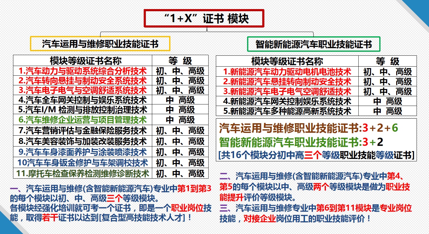 汽车专业领域1+X证书模块