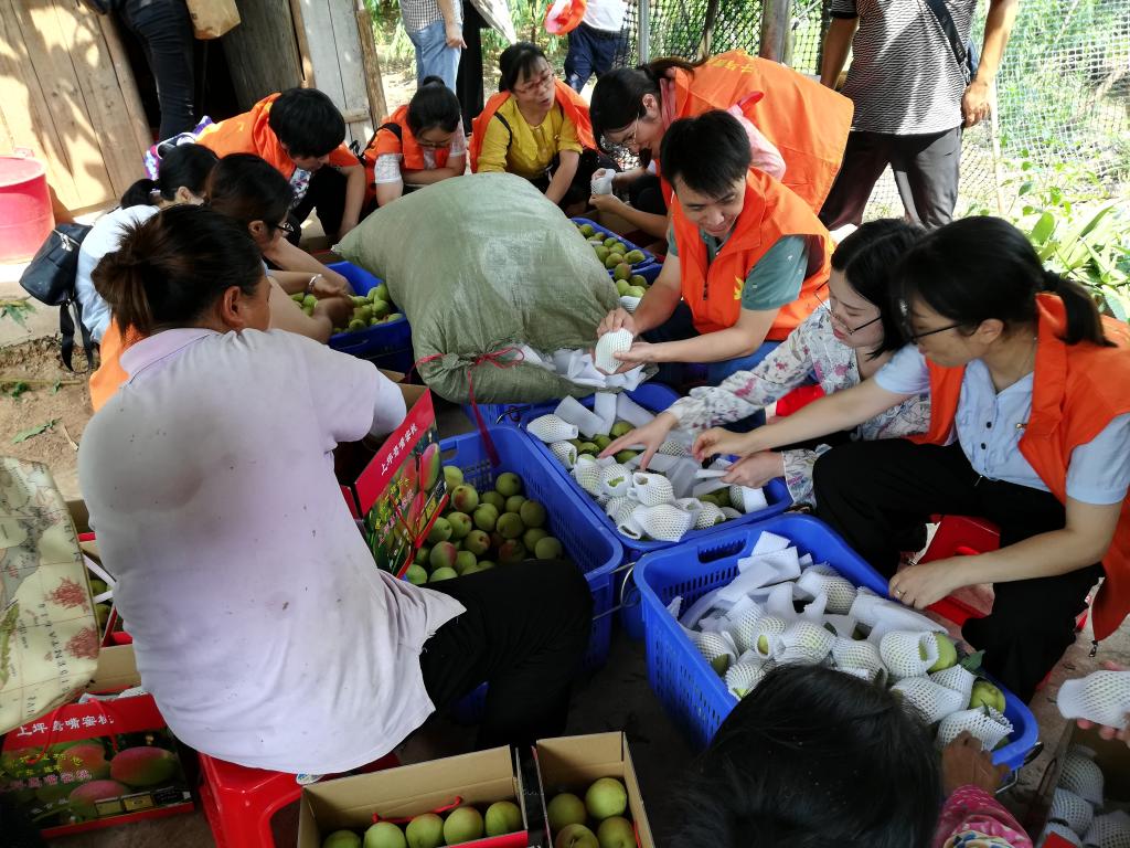 最后,全体党员在连平县上坪镇小水村开展了“爱心助农”党员志愿服务活动,帮助果农摘桃子、挑桃子、装桃子,用实际行动帮助果农开发销售渠道。