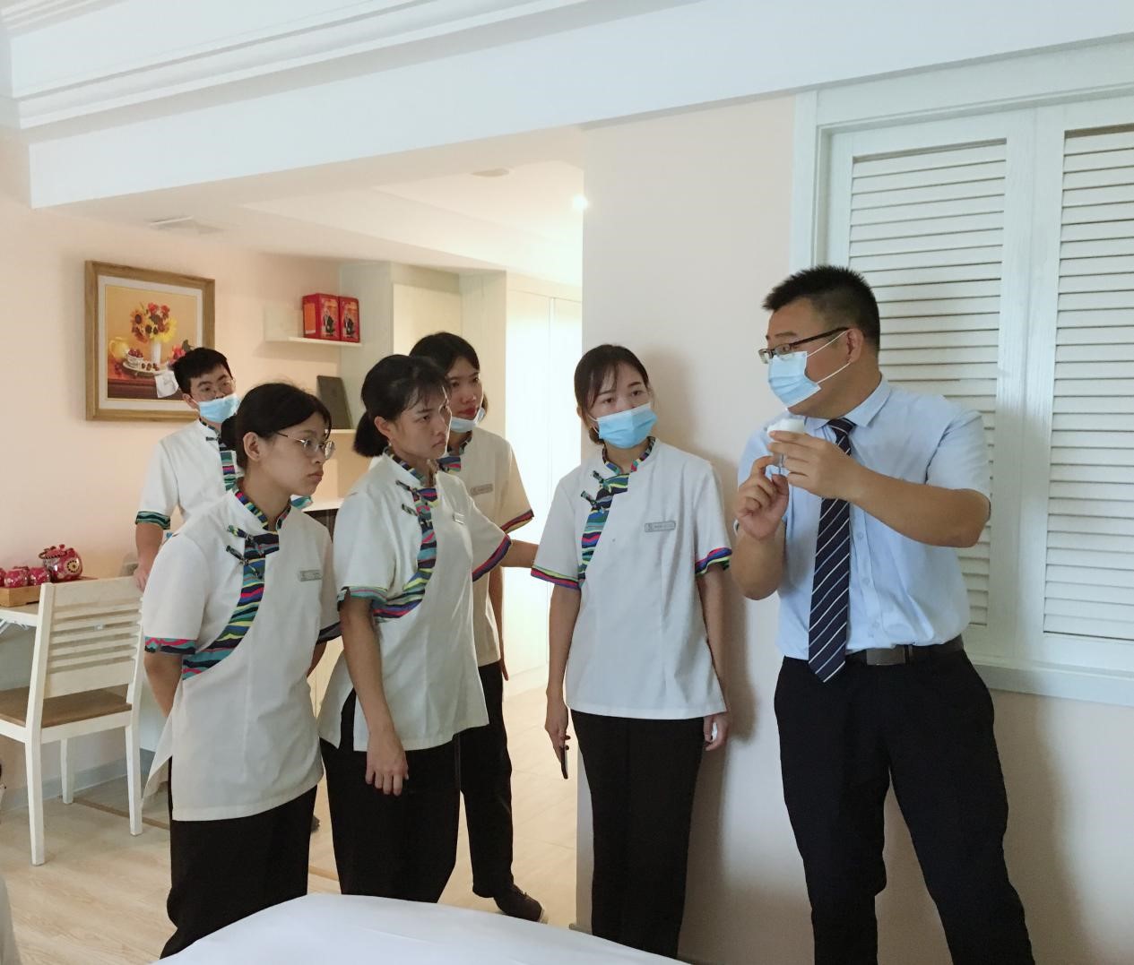 根据2018级学徒制班的培养计划,学徒制班的同学今年7月份正式进入第三年学徒制的企业在岗/工作环节,结合学徒制班的整体人才培养方案进程和校企联合的人才培养体制,第三学年是从学习到工作、从“学生”“预备员工”到“正式员工”的递进,企业导入在岗实习的人才培养方案,帮助学徒制班学生蜕变成职业化素养高、专业能力强的企业需求人才。这一年同学们会在企业经过入职集训、轮岗实践和定岗实践等项目快速成长,提高个人能力。学校派出酒店管理专业谭健萍老师驻店挂职,锻造为“双师型”教师,与学徒制班学生共成长。