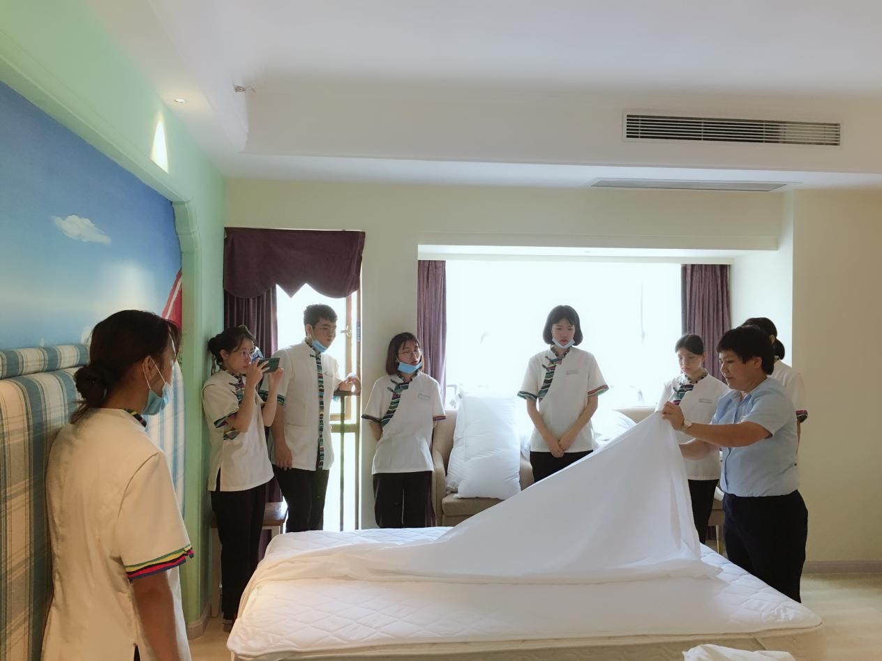 在轮岗实践阶段,全班同学分成3组,分别在房务部、餐饮部、景区运营部进行轮岗,每个部门为期1-2个月的轮岗实践中涵盖2-3个岗位,目的是为了让同学们能快速了解三个一线对客服务部门实际运营情况,了解相关业务的跨部门关联性。在轮岗期间,企业导师制定岗位培训计划,并根据在岗实习的情况针对性地进行培训,还定期地对同学们的工作进行评估和考核。