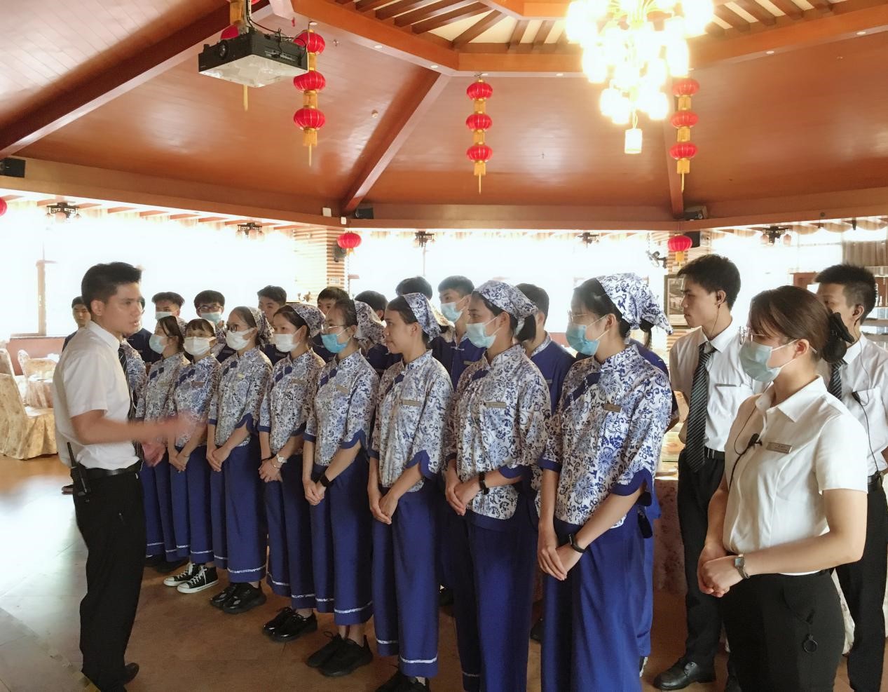 餐饮部经理召开每日例会(前排为学徒制班同学)