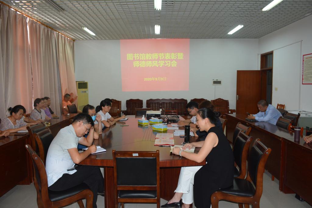 9月9日下午,图书馆在会议室召开教师节表彰暨师德师风学习会。会议表彰了2020年度先进教育工作者,组织学习师德师风相关文件,并通报了本学期的重点工作。